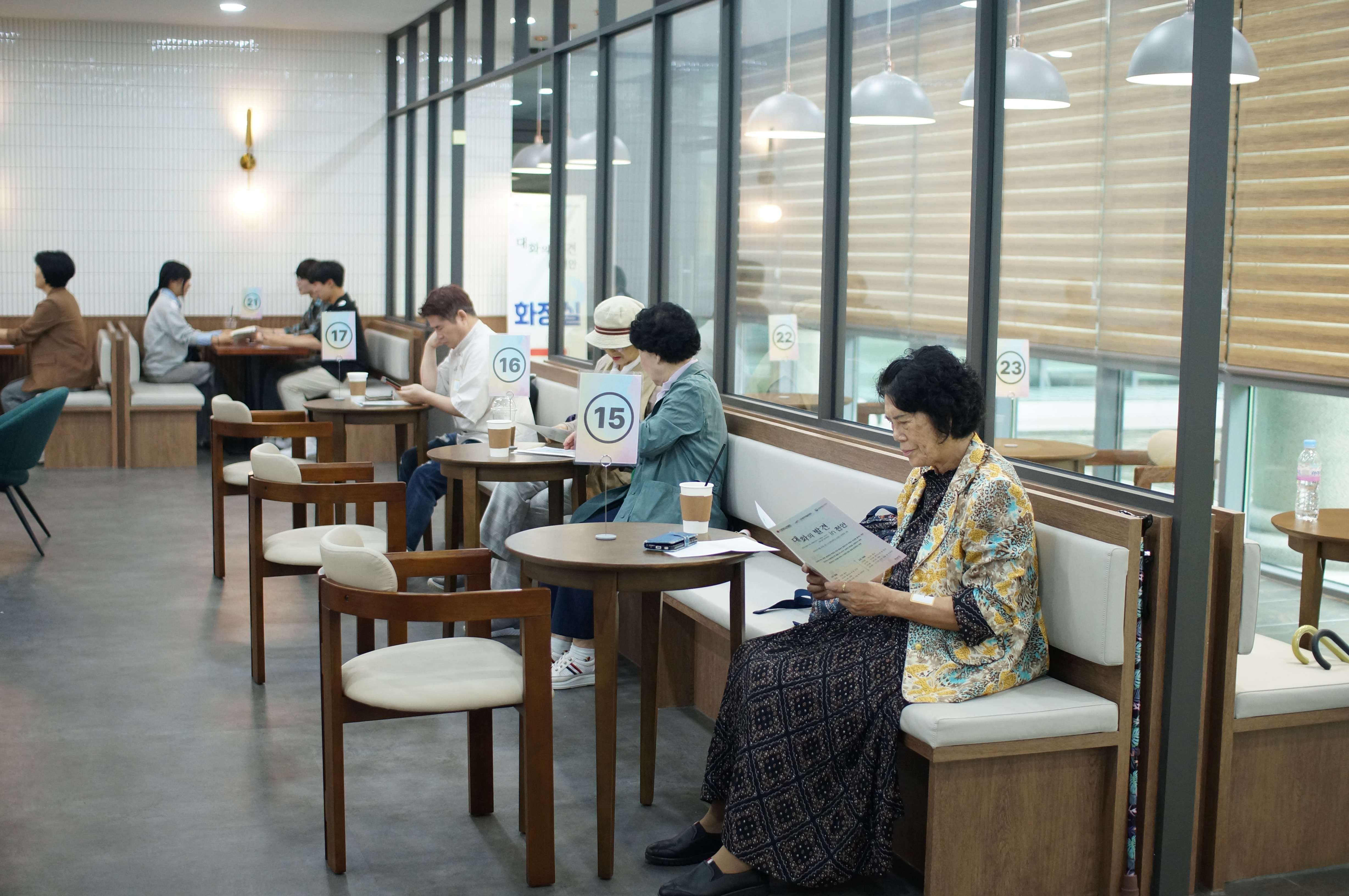 우리들의 약속과 1:1 대화가이드를 모두 함께 공유하는 동안 참가자 매칭이 진행되었습니다. 두근두근하는 참가자 매칭이 공개되고 테이블에 놓여진 번호로 이동하는 시간을 가졌습니다. 자연스럽게 자기소개와 사전설문결과표를 공유하고 대화를 시작하였습니다.