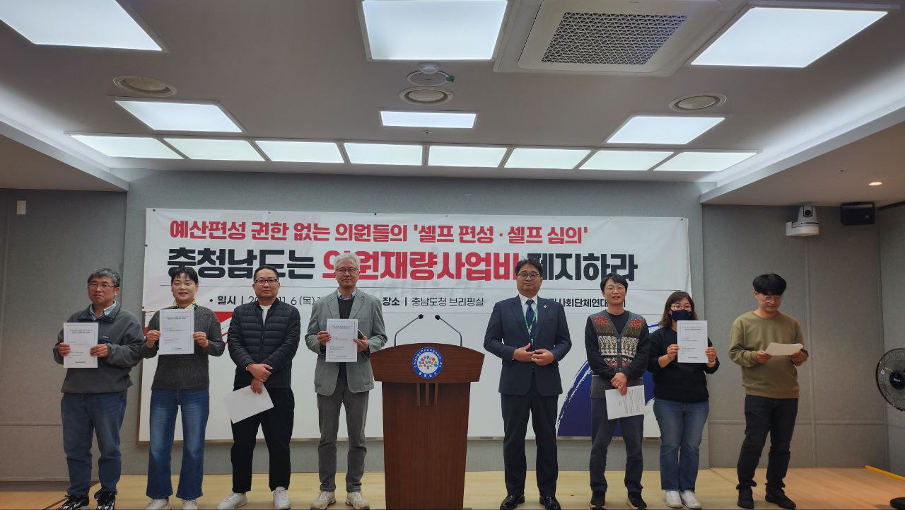 우리는 충남도가 불법·편법으로 편성해온 의원재량사업비(지역현장 밀착 건의사업)를 전면 폐지하고 주민참여예산 확대와 공식 절차를 통한 민원해결 시스템을 마련할 것을 요구한다. 주민의 세금은 공동체 전체의 삶을 개선하기 위한 공공의 자원이다. 이제 권한 없는 ‘셀프 편성·셀프 심의’의 관행을 끝내야 한다.
