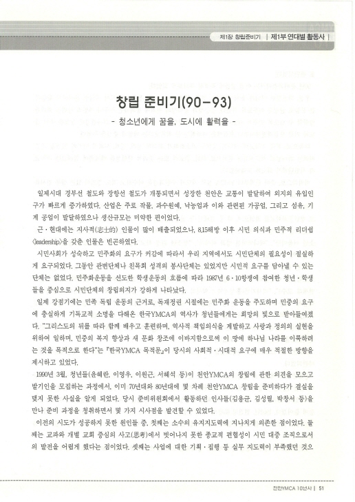 천안YMCA 10년사 연대별 활동사 01창립준비기